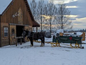 Ride the historic bobsled through a winter wonderland as the sleigh glides beside the river and through the woods. Located just minutes from downtown Bozeman yet out in the country, our rides take you away from the hustle and bustle of the town. The bobsled holds ten passengers. If you have a larger group, we can accommodate you, but you’ll need to call because you cannot book more than ten passengers online.